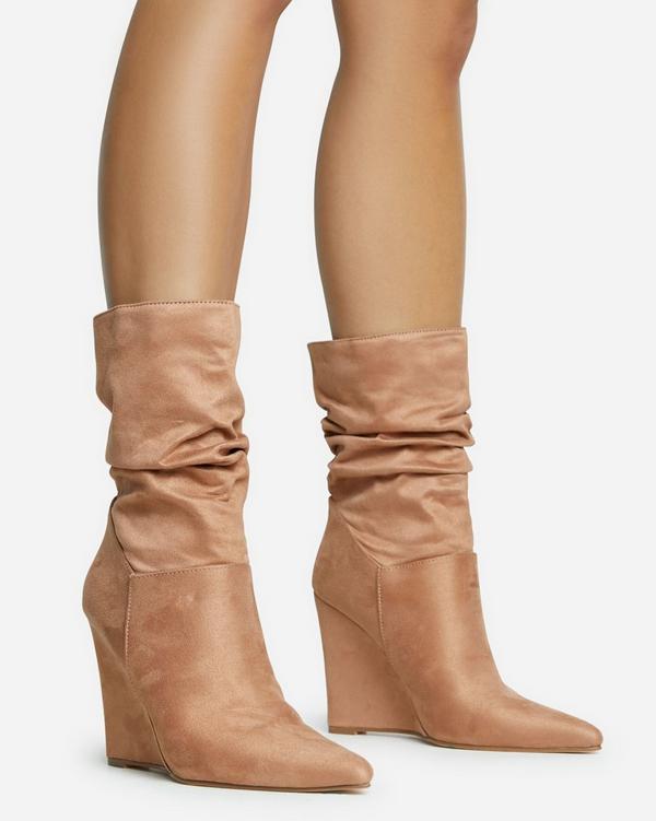 Tan wedge sale heel boots