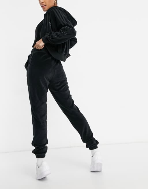 Adidas black sale velour tracksuit